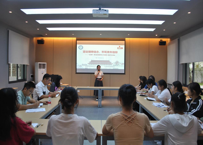 为进一步深入学习贯彻习近平新时代中国特色社会主义思想,培养学生树立崇高理想,厚植爱国情怀,9月15日,“红话筒”理论宣讲辅导员工作室在我校“一站式”学生社区辅导员工作室举办“坚定理想信念,筑牢青年信仰”主题读书分享会。教育学院党总支副书记、“红话筒”理论宣讲辅导员工作室负责人宋丹阳、学生事务处(部)团委专员邱胜昇、教育学院辅导员任学轲老师和教育学院学前与音乐学生党支部全体党员参加了此次活动。