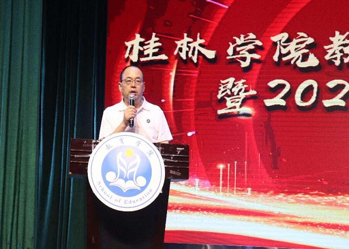 会上,彭超院长对2023级全体新生表示欢迎,欢迎选择加入教育学院这个温暖的大家庭。接下来他从“大学是什么?大学学什么?我们如何学?”三个问题向同学们介绍了大学的本质,在大学学习的内容以及如何高效地完成学业。最后,他寄语新生:希望同学们在思念的大学生活里,学会自律,学会自强,学会生活,学会学习,学会交往,在青春的赛道上奋力奔跑,跑出当代青年的最好成绩。