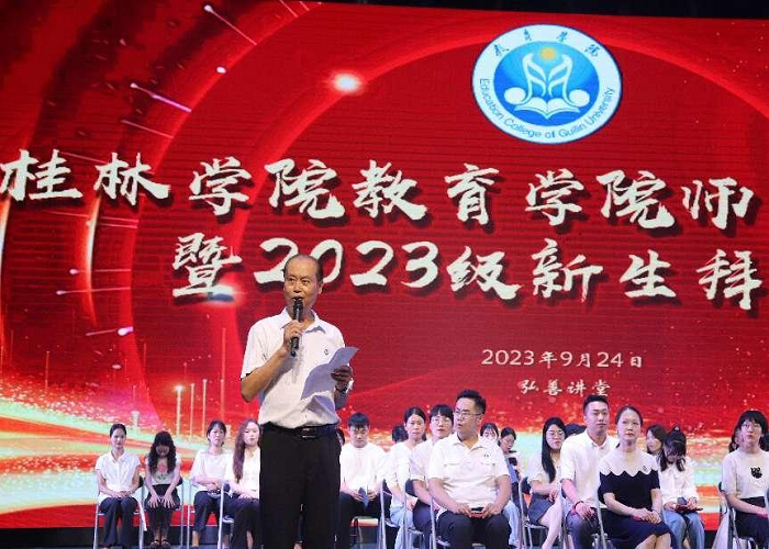 心向朝阳梦启航,扬鞭奋蹄筑新章。为了引导新生走入人生新的阶段,增进师生间的相互了解,更好地了解学校和学院的基本情况,9月24日下午,教育学院在弘善讲堂举办了师生见面会暨2023级新生拜师礼。教育学院院长彭超,党总支书记周杰,副院长黄小玲、李安然,党总支副书记宋丹阳以及学院全体教职工和2023级全体新生出席大会。