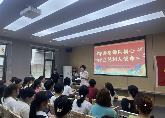 最后,支部书记张梅洁老师作总结发言,她说:“一个人遇到好老师是人生的幸运,一个学校拥有好老师是学校的荣光,一个民族源源不断涌现出一批又一批好老师则是民族的希望”。通过本次主题党日活动的开展,增强了党支部的凝聚力和战斗力,坚定了支部成员们的理想信念,在今后党支部将按照上级党委的工作部署,充分发挥好党支部的思想教育引领作用,严格落实师德师风建设要求,以更高标准、更实作风、更强担当,坚定理想信念,牢记初心使命。