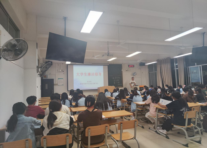 为加强学生的道德修养,提高道德自律意识,增强防腐拒变的良好心理品质,培养新时代学生干部诚实守信,廉洁高效的优良作风,10月18日晚,教育学院团总支在至善楼1209教室开展第五期“青年马克思主义者培养工程”大学生骨干培训班专题讲座(第一讲)。本次讲座邀请到教育学院党总支副书记宋丹阳老师担任主讲。