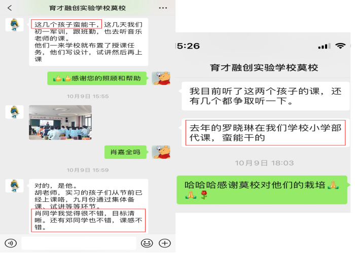 11月16日上午,教育学院音乐学专业教研室主任李小琳、副主任杨疆玉、实习指导教师胡雅珂一行赴桂林市育才融创实验学校对我校实习生开展了教学实习中期检查工作,受到了校领导及师生的热情接待。