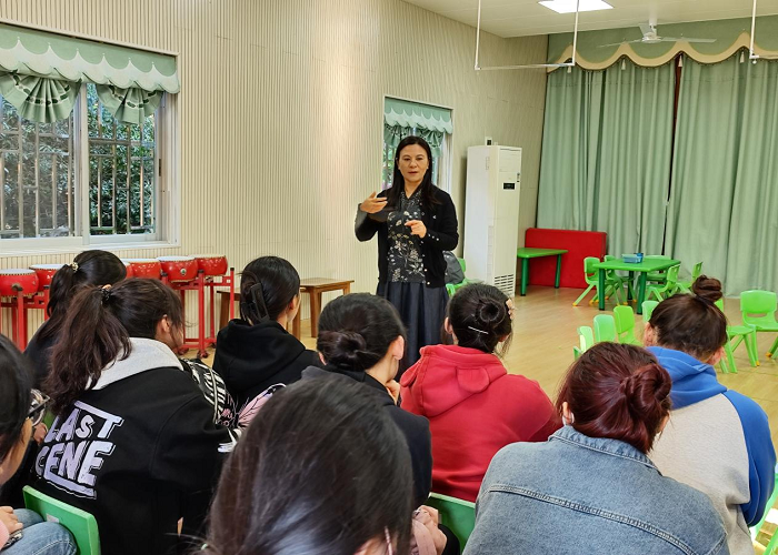图1:七星区高新幼儿园秦艳玲园长做幼儿园管理分享