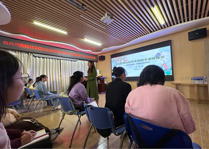 本次协同育人系列活动安排七星幼儿园(高新园)、快乐太阳城雁山区幼儿园讲座、优质课共四场。七星幼儿园秦艳玲园长介绍了桂林市七星区高新幼儿园以“办温暖、负责、舒展生命的幸福教育”为目标的办学基本情况及“以爱为先,静心研究,践行反思”为教育行动纲领的幼儿园课程建设经验;李莉娜副园长的《幼儿园一日活动设计与组织》讲座,分别从一日活动的现状分析、设计依据、安排内容、组织方法和利用游戏优化五部分给同学们全面地呈现了幼儿园的一日活动情况。