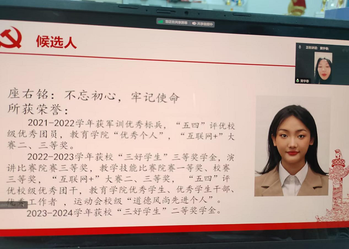 2023年11月29日,教育学院小教与舞蹈学生党支部在腾讯会议召开了党员发展大会,本次参加会议的有教育学院小教与舞蹈学生党支部书记梁琪、党支部副书记任学轲及支部全体成员。