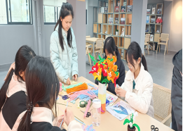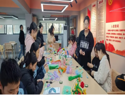 中午1点,教育学院学前教育专业师生分别在杉湖家苑一站式学生社区和辅导员工作室为百寿中学研学学生安排了“扭扭棒花卉制作”和“团花剪纸制作”两个专题的研学活动。