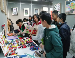 上午10点,百寿中学师生团队在学院副院长黄小玲的带领下,来到嘉善楼1楼艺术展厅观摩了我院学前教育专业主题为“弘扬中华优秀文化 传承民族民间技艺”的美术作品展。学前教育黄红韩老师为研学师生们介绍本次作品展的内容、种类、制作的基本技法以及大学美术课程的设置特点等。2021学前教育专业学生马小莉就学前作品进行介绍,按照展品内容的几大板块进行讲解:超轻黏土、玩教具制作、儿童卡通画、少数民族手工艺品、扭扭棒花卉、剪纸、团花剪纸纸伞等,百寿中学研学师生们在参观作品时,对色彩鲜艳,制作精美的手工作品,展现出浓厚的兴趣。