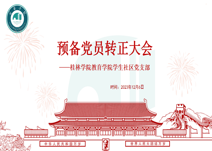 为不断加强党员党性教育,规范党员发展程序,增强党支部的凝聚力和战斗力,2023年12月6日,教育学院学生社区党支部在腾讯会议召开了预备党员转正大会,此次大会讨论了李昕怡、陆婉君等6名预备党员的转正问题,支部全体正式党员和预备党员参会。