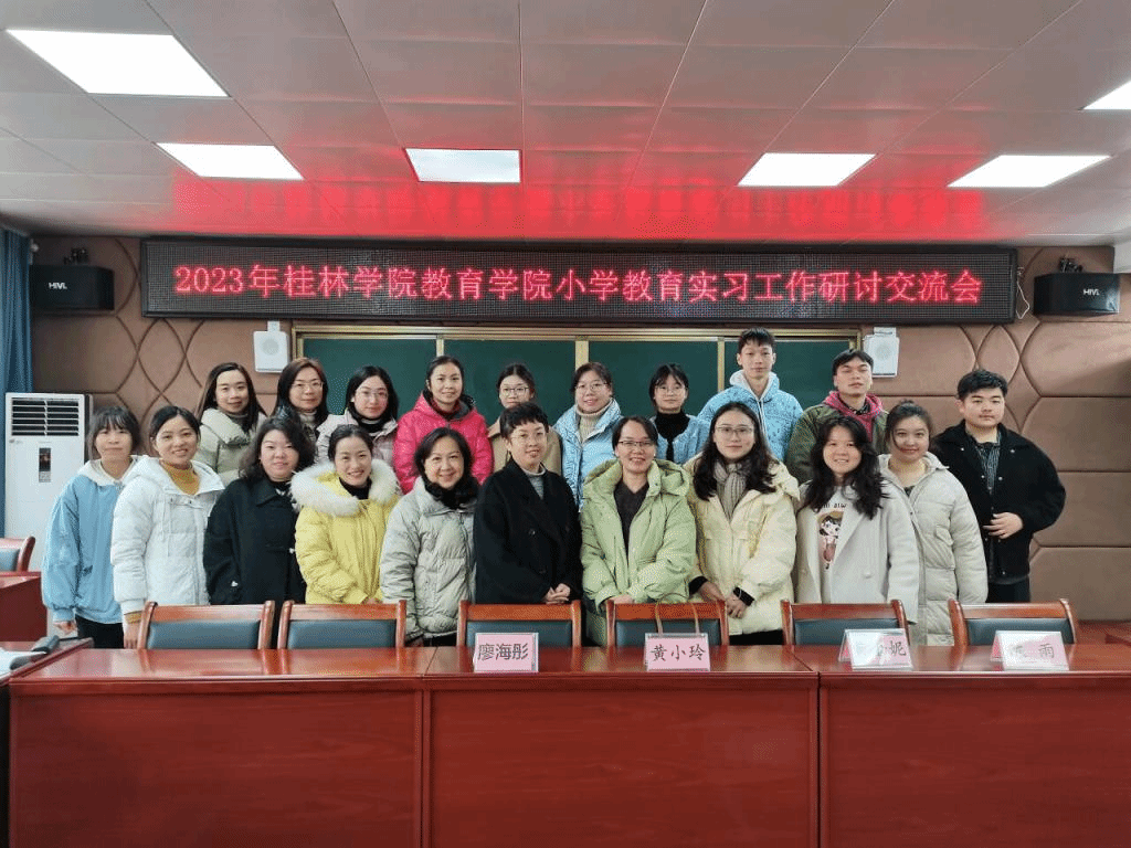 为切实了解实习生的教育实习情况,加强学院与实习生、实习基地的联系,深化协同育人的落实工作,12月21日上午,教育学院副院长黄小玲一行3人前往桂林市汇通小学,开展实习工作交流研讨会。汇通小学校长廖海彤、行政领导代表以及全体实习生参加了此次会议。