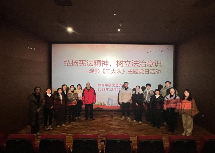为弘扬宪法精神,开展法治教育,12月27日下午,教育学院党总支组织师生党员代表前往金雁影院开展观影《三大队》主题党日活动。