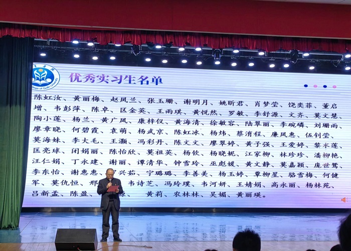 接下来的环节,周杰书记宣读了87名优秀实习生名单,并对优秀实习生表示祝贺,激励大家在今后工作,需要保持奋发向上的势头,努力创先争优,在各行各业发光发热,积极服务社会、建设祖国。