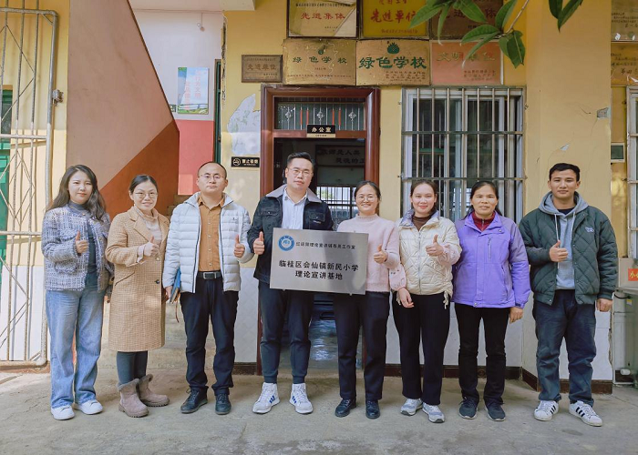 为更好地推动党的理论成果深入基层,1月17日,教育学院党总支副书记、红话筒辅导员工作室负责人宋丹阳一行到临桂区会仙镇新民小学与该校蒋玉秀校长共同举行“理论宣讲基地”挂牌仪式。