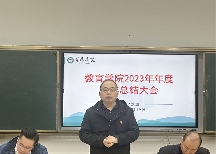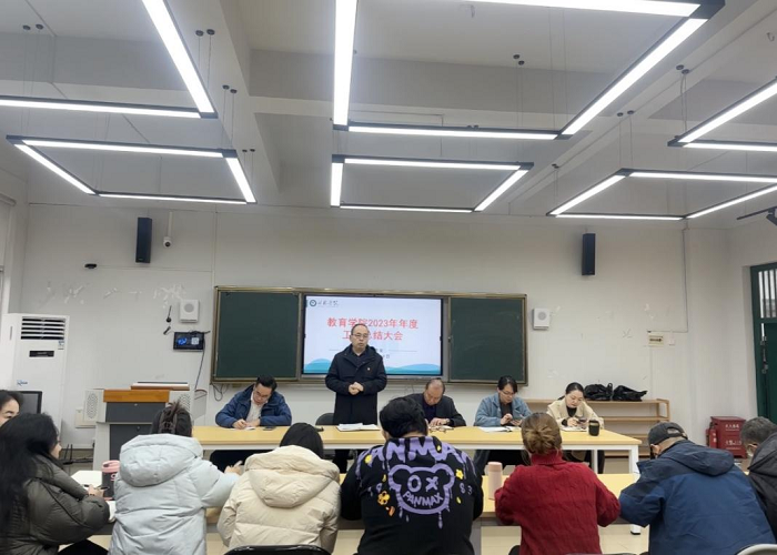 2024年1月19日上午,教育学院在嘉善楼6242会议室召开了2023年工作总结大会,会议由党总支书记周杰主持,教育学院全体教职工参加。