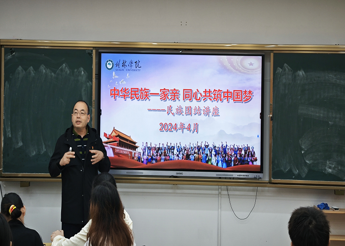 “广西三月三”既是一个载歌载舞的节日,又是一个民族团结的节日。4月10日,教育学院组织师生在嘉善楼6241教室开展“中华民族一家亲,同心共筑中国梦”民族团结教育主题讲座,由教育学院党总支书记周杰教授主讲,学院团总支书记陈意扬、部分团学干部参加了讲座。