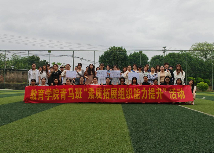 为提升青马班学生综合素质,加强大学生组织纪律观念,引领教育学院学风建设,4月18日,教育学院团总支副书记谭小莉老师组织青马班学员在小足球场进行以提升组织能力为主要目的素质拓展活动。