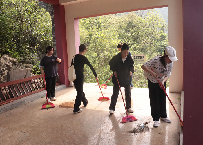 支部成员打扫侯山忠烈亭和烈士墓