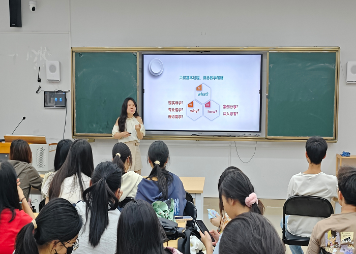 接着,陈雨详细解读了结构思维的基本概念与特点,包括逻辑、条理与系统性等。她指出,结构思维不仅有助于师范生培养科学的思维模式,还能优化学习方法,提升问题解决能力。讲座中还探讨了结构思维在教学设计与实施中的应用。通过课程框架的系统构建、教学活动设计的条理化与层次性、教学评价的结构化与专业反馈等方面的讲解,让同学们深刻体会到结构思维在教学实践中的重要作用。