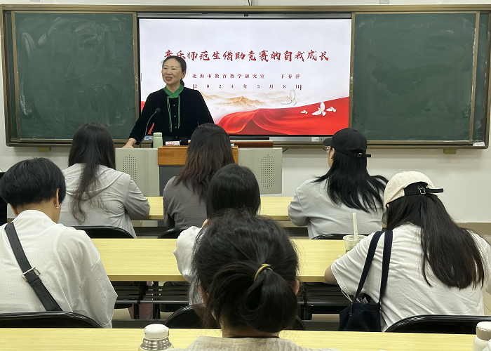 为进一步提升音乐学专业师范生教育教学实践能力,落实立德树人根本任务,5月8日,教育学院音乐学专业举办“教师教育”系列讲座第三场。本次主讲嘉宾是广西北海市教育教学研究室教研员于春萍老师。她讲授的主题是《音乐师范生借助竞赛的自我成长之路》。教育学院副院长李安然、教研室主任张宗贺、专任教师代表及2021级音乐学专业全体学生听取了讲座。