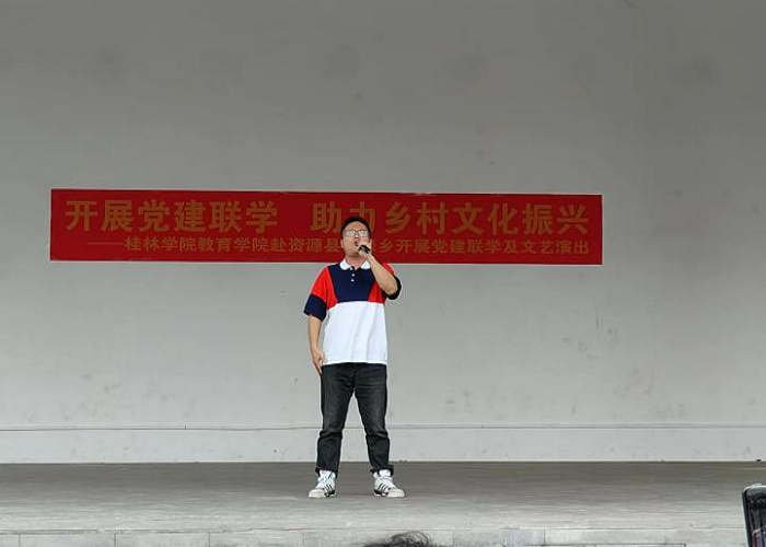 为了更好开展基层党组织联学共建,振兴乡村文化建设,5月31日,教育学院党总支书记周杰、党总支副书记、院长彭超及部分师生来到资源县中峰镇,联合开展了联学共建和文化下乡活动,活动在中峰镇政府门前广场上的小舞台举行。中峰镇政府部分党员干部和当地群众观看了现场演出。