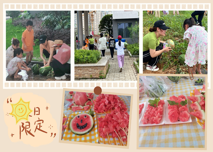 采摘过后,学生和家长开始切西瓜摆盘和品尝。切开西瓜的瞬间,红色的果肉和黑色的籽儿让人垂涎欲滴。孩子们迫不及待地品尝着自己的劳动成果,那种甜蜜和满足是无法用言语表达的。小学教育专业同学们协助家长们搬西瓜、切西瓜、西瓜摆盘,一起享受制作美食的快乐。