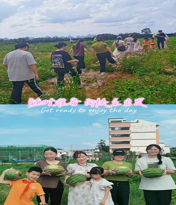 为了给学生提供一个真实且富有活力的教育环境,促进其对小学劳动教育、家校共育机制的深入理解和亲身体验,2024年6月21日下午,小学教育专业教师黄莹、罗慧芳带领2022级小学教育专业部分学生,前往桂林市金雁学校,参加该校举办的以“共生共长金雁瓜趣”为主题的第二届西瓜丰收节。