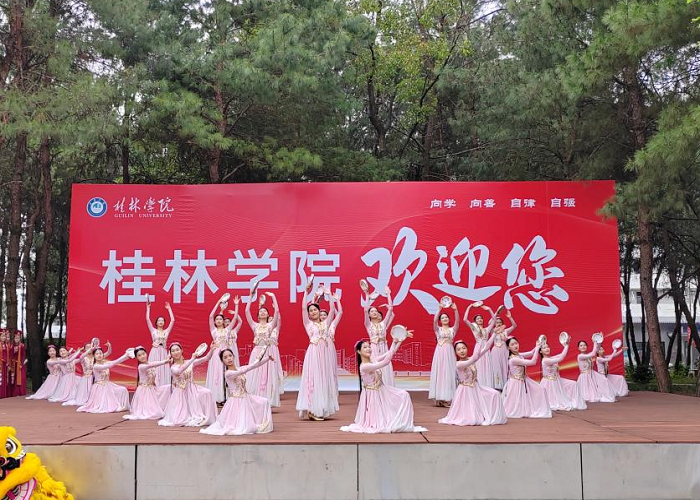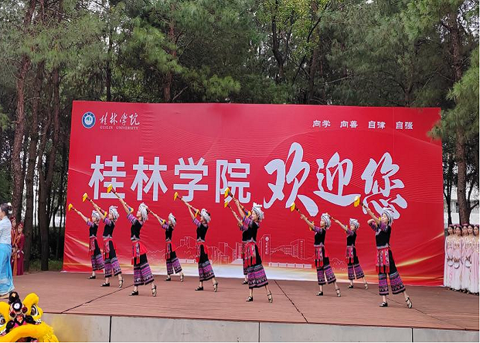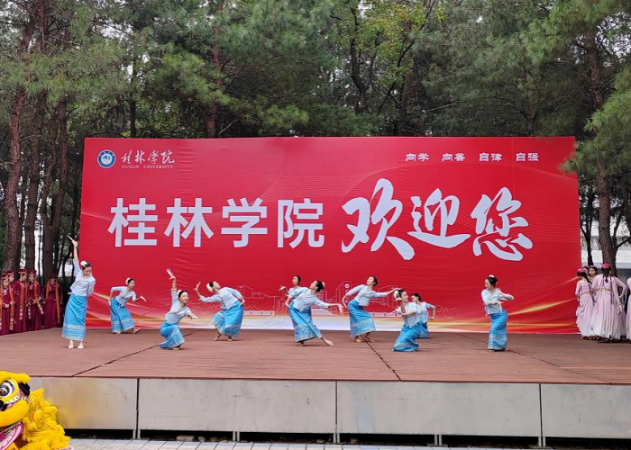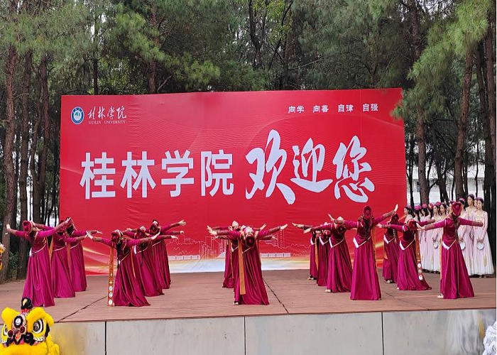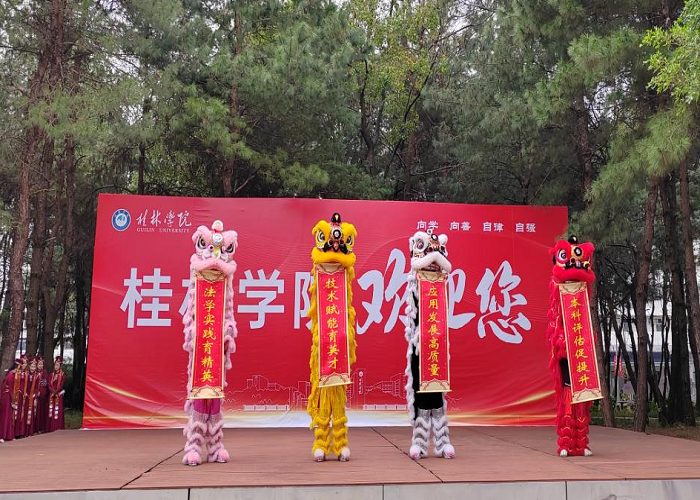 欢迎仪式上,教育学院礼仪队的“赠绣球”、体育教育专业学生的舞狮、舞蹈专业学生的中国民族民间舞《同心圆》等活动,让客人们感受到了桂林学院师生的热情友好与专业素养,体验了桂林学院的文化魅力。