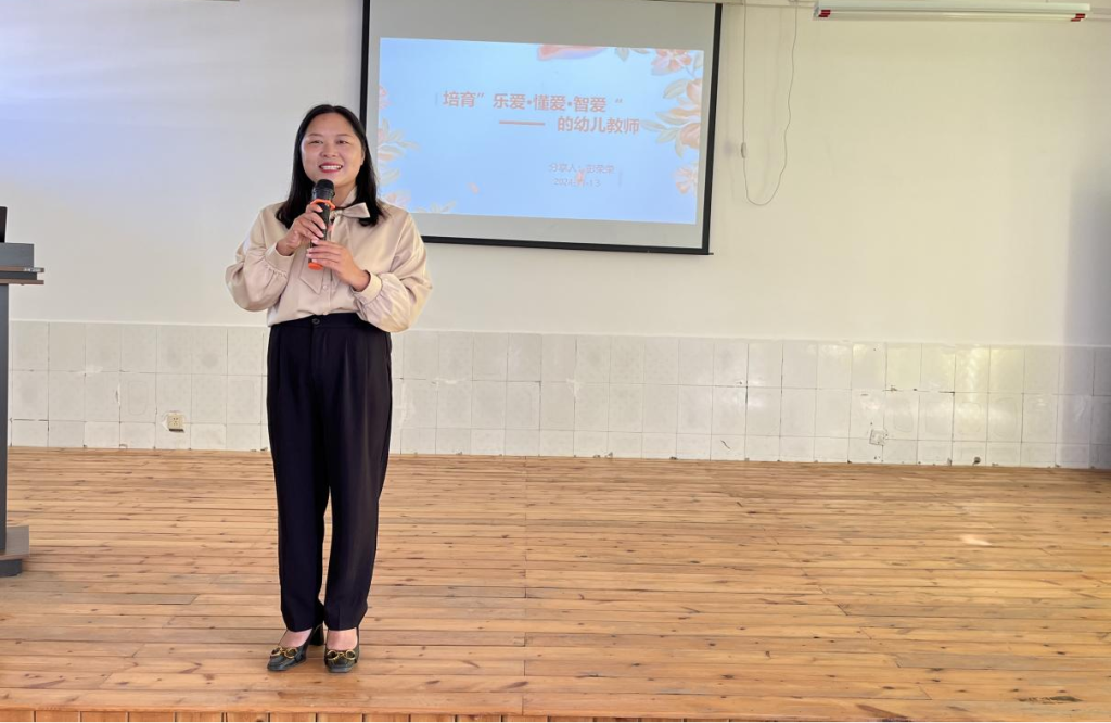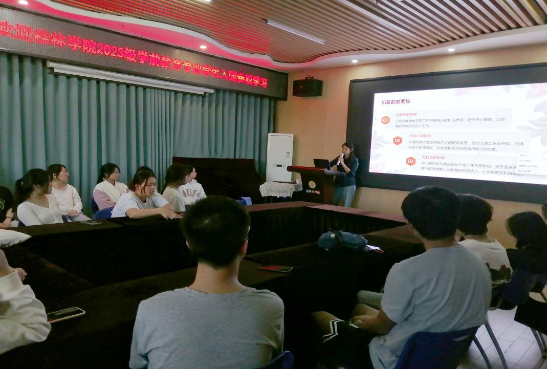 太阳城幼儿园杨璧源园长为学生们带来“乐爱·懂爱·智爱”主题的幼儿教师讲座。讲座活动现场气氛活跃,杨园长通过自身的工作体会和丰富的实践案例,阐述了乐爱、懂爱、智爱”的内涵、重要性,剖析了如何在幼儿教育中培养“乐爱·懂爱·智爱”的品质。她认为“乐爱·懂爱·智爱”的幼儿教师培养是一个长期而系统的工程,需要在实践中不断锻炼,多种方式提高教师的专业素养和实践能力。最后她提出了对幼儿教育的期待,希望通过个性化教育、丰富教学方式和实践活动等,让幼儿在多样化的学习环境中得到全面发展;通过组织实践活动,在亲身体验中更好地理解和掌握知识多元化教学。同时也祝愿幼儿教育往科学性公平性和创新性发展。