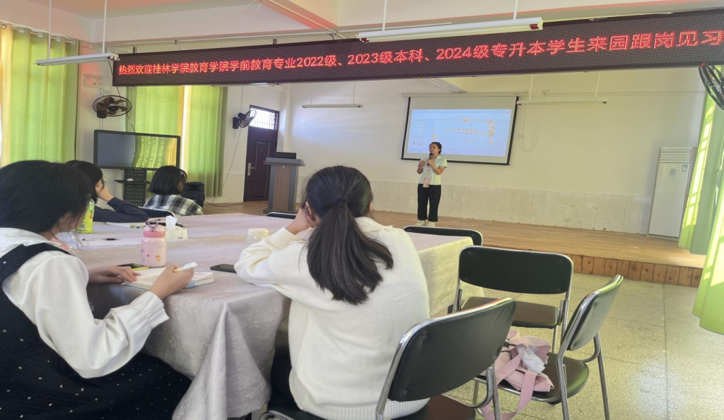 在桂西幼儿园,学生们聆听了胡欣凤老师主讲的《如何在一日活动中获得职业幸福感》和肖舒老师主讲的《幼儿教师“爱”的教育分享》主题讲座,学生们认真聆听,用心感悟,加强了对幼儿园一日活动的认识,感受到教师对幼儿教育的热爱与责任。随后,学生们与幼儿们展开了温馨互动,一起唱歌、跳舞、做游戏,不仅让学前教育专业的学生们学到了宝贵的教育经验,更让他们深刻体会到了爱的力量。