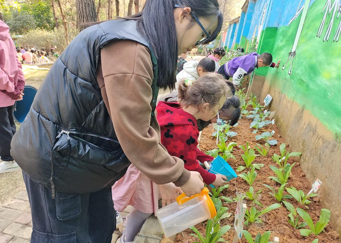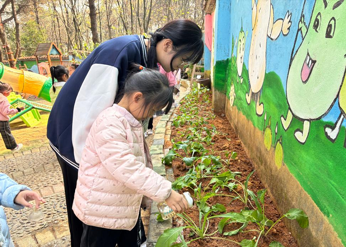 图3:2021级学前教育专业学生带领园区小朋友一起动手种植蔬菜