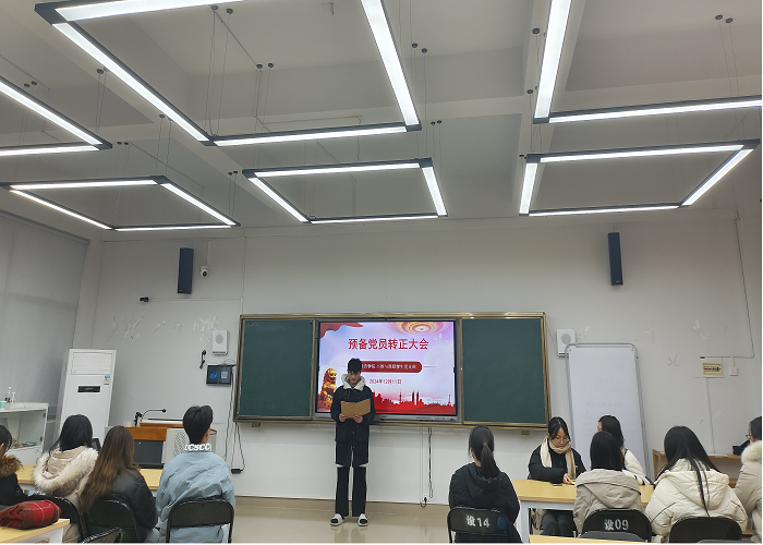 2024年12月11日,教育学院小教与舞蹈学生党支部在6242教室召开预备党员转正大会,参加大会的有党支部书记梁琪、副书记任学轲及支部全体成员。