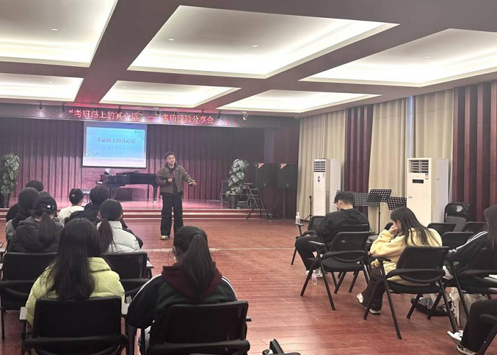 为进一步营造浓厚的考研氛围,帮助考研学子更好地备考,12月18日,教育学院在6246音乐演艺厅举办了“考研路上的真心话”考研经验分享会,特邀请广西师范大学音乐学院2024级音乐学在读硕士研究生王俐程(教育学院2024届音乐学专业毕业)作为嘉宾为大家分享考研备战经验,此次分享会吸引了学院2025、2026届学生参加,现场气氛十分热烈。