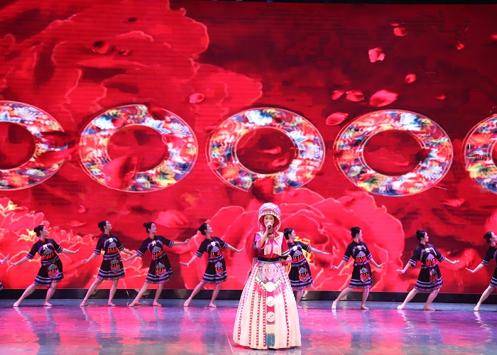 为庆祝中华人民共和国成立75周年,铸牢中华民族共同体意识,弘扬爱国主义精神, 12月18日晚,我校在弘善讲堂隆重举行“中华民族一家亲,同心共圆中国梦——2024年秋季学期铸魂育人大舞台”专场演出,为现场师生展开了一场以民族团结教育为主题的思政大课。学校党委副书记黄润松、纪委书记康庚莲、副校长何玲和相关部门、各学院负责人共500余名师生观看演出。