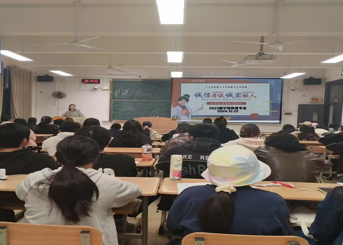 为加强学风建设,营造良好的考试氛围,引导学生树立正确的考试观念,增强诚信意识,自觉遵守考试纪律,教育学院于12月22日组织各年级各专业召开展了诚信考试教育主题班会。