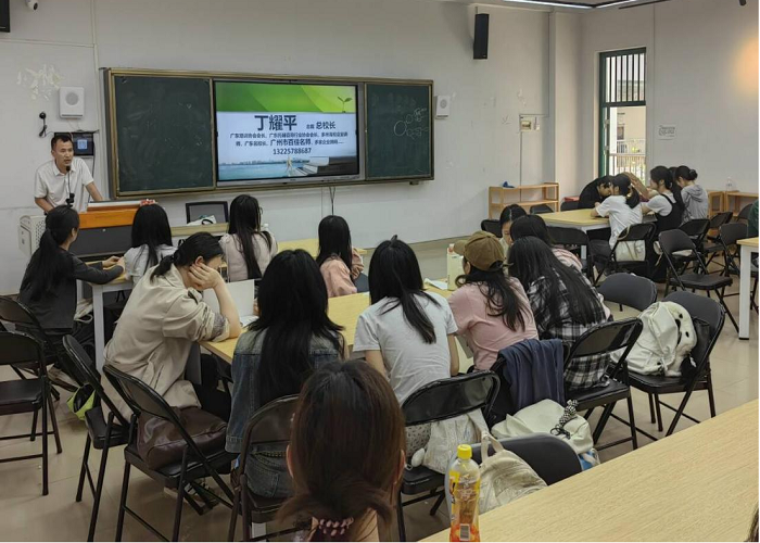 宣讲会伊始,学院党总支副书记致辞,强调校企合作对提升学生实践能力的重要性,并对广东德胜科教集团长期支持学校人才培养表示感谢。广东德胜科教集团总裁丁耀平随后从集团办学理念及规模、集团发展、招聘要求、福利待遇等方面展开分享。他指出:“当前教育行业正加速数字化转型,对兼具教育情怀与科技素养的复合型人才需求激增,希望同学们在校期间不断提升自己的专业技能和综合素质。”