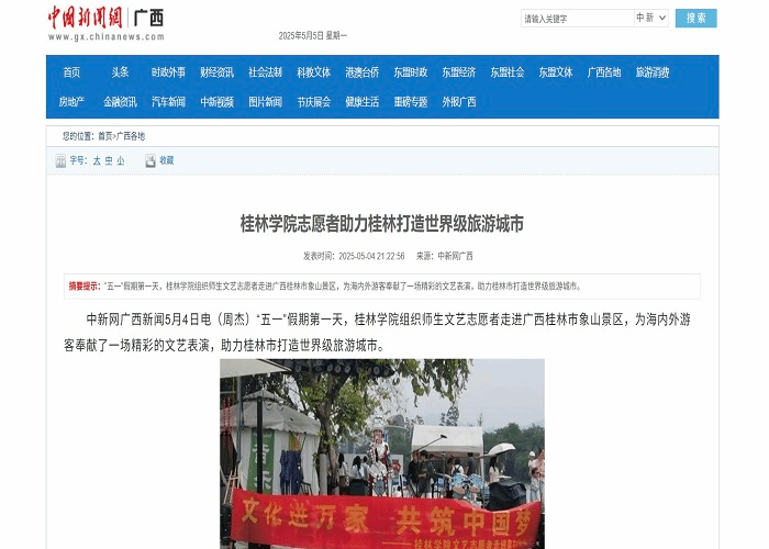 网页链接:桂林学院志愿者助力桂林打造世界级旅游城市https://www.gx.chinanews.com.cn/gxgd/2025-05-04/detail-iherfkrs7589000.shtml