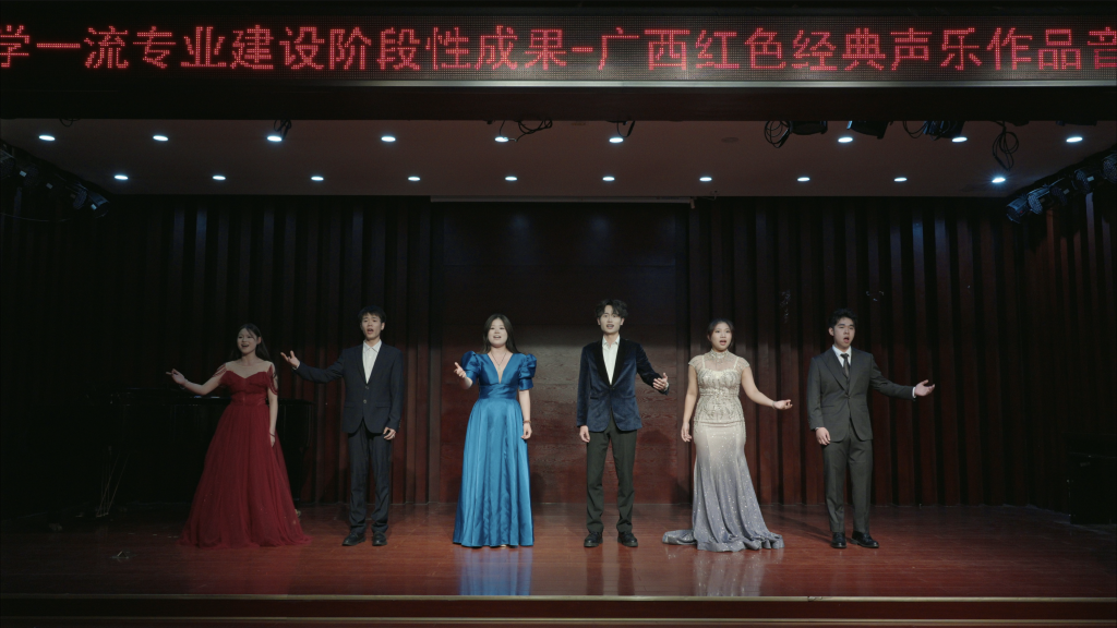 为深入学习贯彻党的创新理论,展示音乐学一流专业建设成果,弘扬红色文化,传承革命精神,5月19日晚,教育与音乐学院在嘉善楼音乐厅举办“音乐学一流专业建设阶段性成果——广西红色经典声乐作品音乐会”。音乐会以广西红色革命历史和脱贫攻坚为主题,通过15首经典声乐作品,带领观众重温激情燃烧的岁月,感受新时代的壮美篇章。