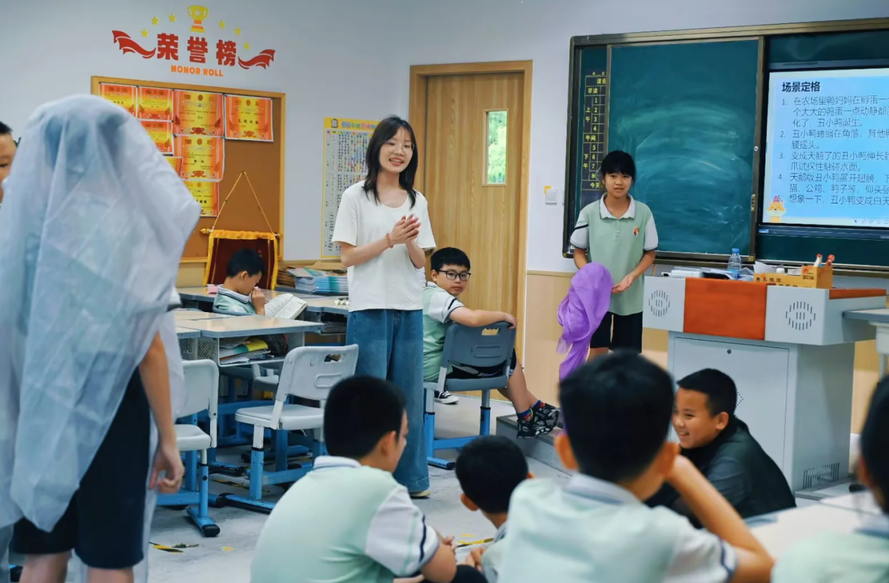 “从剧本打磨到现场控场,每个环节都是课堂理论的应用与挑战。”参与活动的小学教育专业学生表示。此次实践要求他们既是编剧、导演,又是心理团辅活动的促进者,需灵活运用教育戏剧的“定格画面”“教师入戏”“思维追踪”“身体雕塑”“表达性艺术治疗”等技巧,开发能促进小学生心理健康的主题活动。在真实教学场景中锤炼课堂设计、临场应变和共情沟通能力。带队教师指出,这种“实践-反思-优化”的闭环模式,切实提升了师范生的综合育人能力尤其是在未来小学校园中需要能自主开发更多元、创新的校园活动,以活动为载体开展育人活动,本系列的活动将为小学教育的学生们未来职业发展注入创新基因。