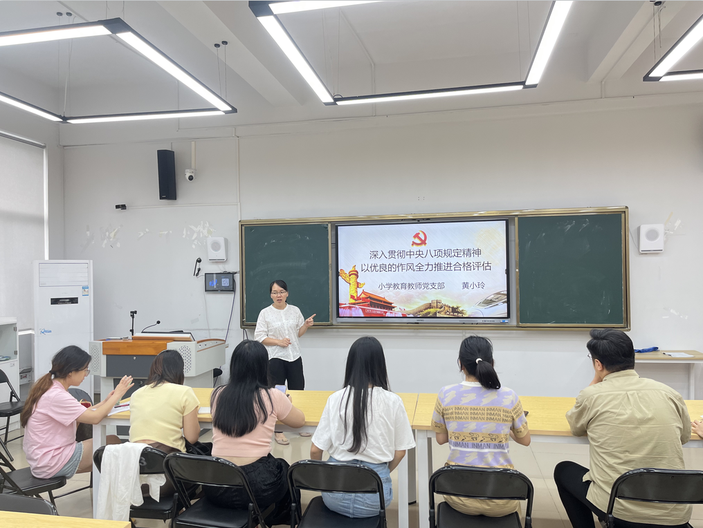6月11日,教育与音乐学院小学教育教师党支部于6242会议室开展“厉行节约强党性 正风肃纪守底线”主题党日活动。支部党员深入学习习近平总书记重要文章,查摆自身问题,以实际行动推进作风建设走深走实。