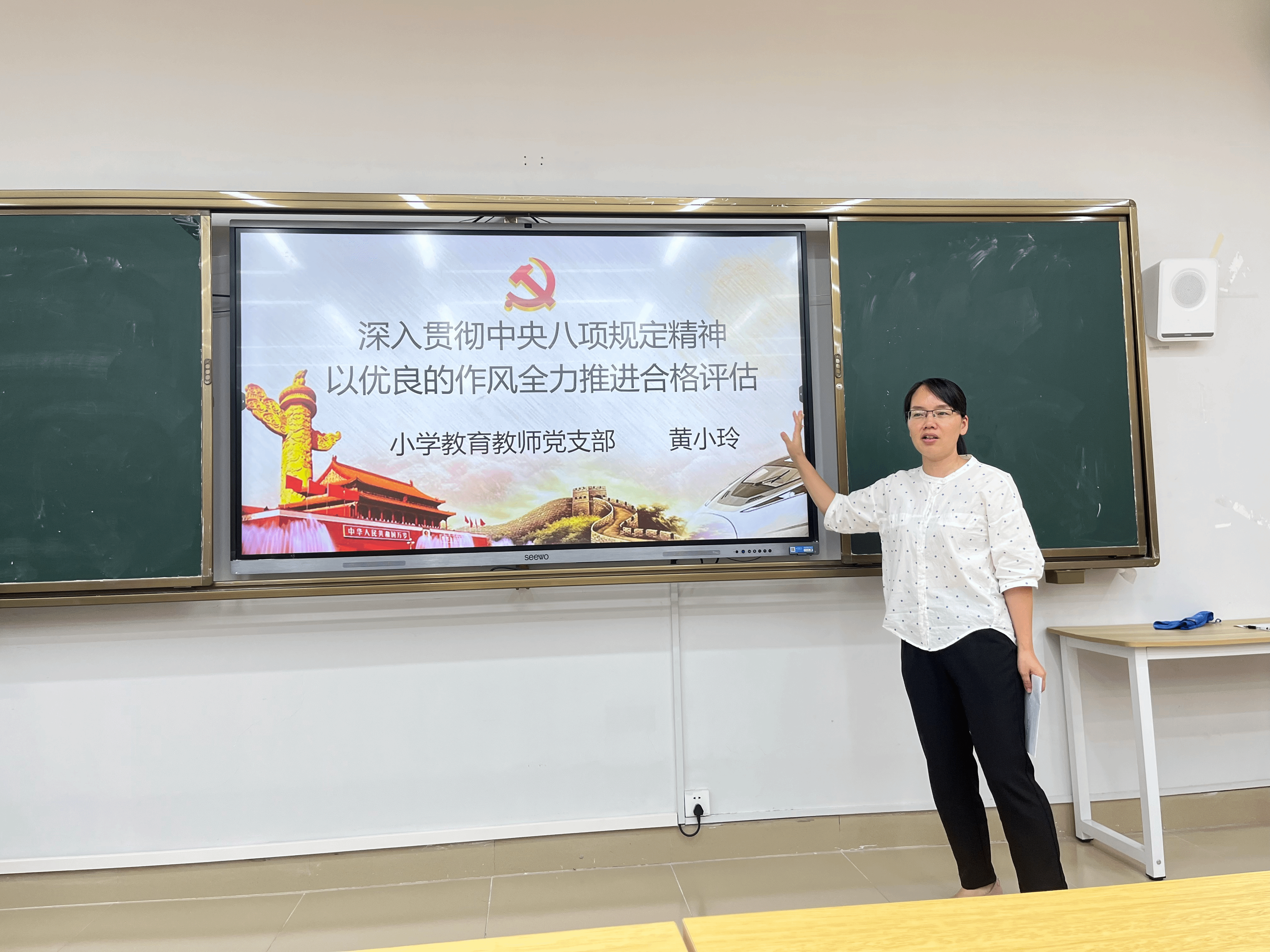 活动最后,党支部书记黄小玲带领全体党员对照“十一个有没有”标准,从理论学习是否扎实、履职尽责是否到位、厉行节约是否彻底等方面深入自查。支部书记强调,要以问题为导向,建立整改清单,将“纠治形式主义、官僚主义”贯穿教育教学全过程,例如在课程设计中避免过度包装、在实践活动中杜绝铺张浪费,真正把纪律规矩转化为行动自觉。