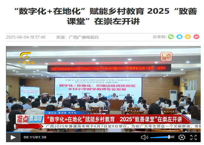 广西网络电视台:“数字化+在地化”赋能乡村教育 2025“致善课堂”在崇左开讲