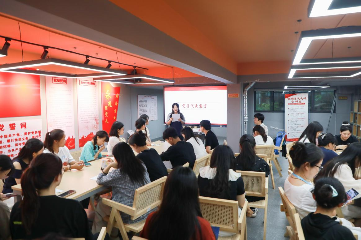 毕业生党员代表分享心得。小教与舞蹈学生党支部黄宇春同志回顾了自己四年大学生活的收获,她承诺:“定当不负母校培养,不负组织重托,带着党员的赤诚与教师的担当,以奋斗之姿投身伟大的教育事业,努力为党旗增辉,为教育添彩”。学生社区党支部邓燕萍同志发言:“今天的活动让我再次感受到党员的责任与荣耀,我将始终以党员标准要求自己,在今后的工作岗位上发光发热。”