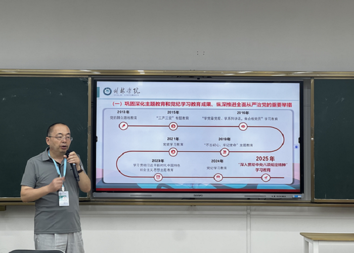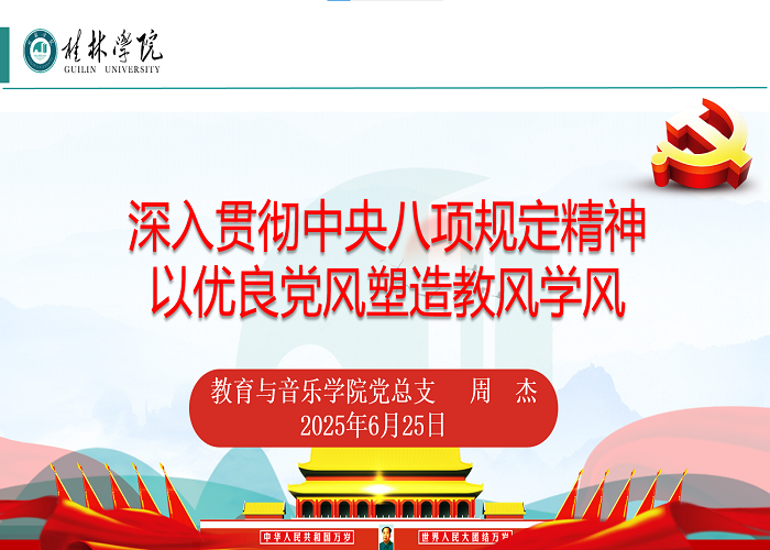 为深推进中央八项规定精神学习教育,6月25日,教育与音乐学院党总支开展学习教育专题党课,由党总支书记主讲。