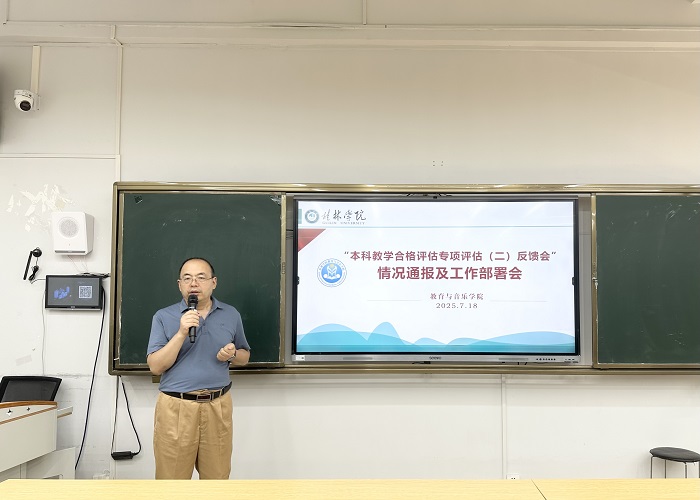 为扎实推进本科教学合格评估整改工作,7月18日,教育与音乐学院组织召开“本科教学合格评估专项评估(二)反馈会”情况通报及工作部署会。本次会议由学院党总支书记主持,全体教职工参加。