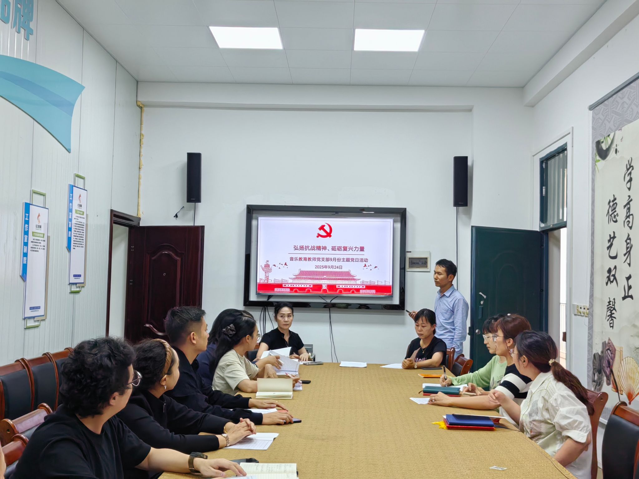 为纪念中国人民抗日战争暨世界反法西斯战争胜利80周年,引导支部党员深刻理解抗战精神的时代价值,增强历史自觉和使命担当,进一步凝聚奋进新征程、建功新时代的磅礴力量,9月24日下午,音乐教育教师党支部在嘉善楼6241会议室举主题为“弘扬抗战精神 砥砺复兴力量”的主题党日活动。