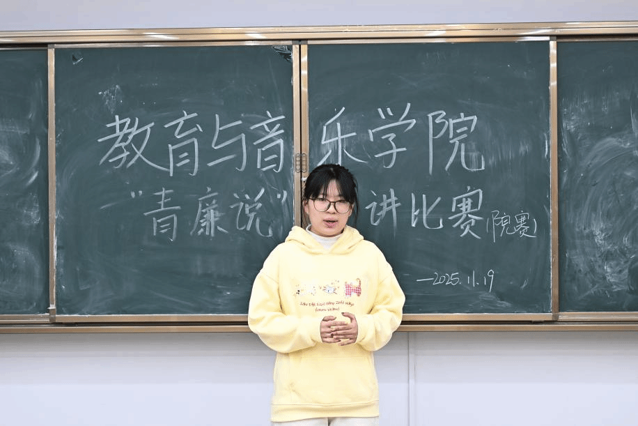 为厚植校园廉洁文化土壤,引导师生树立廉洁自律意识11月19日,教育与音乐学院党总支、团总支在嘉善楼6242实训室组织开展“青廉说”演讲比赛经过班级初赛,有6名选手脱颖而出进入复赛,为师生呈现了一场生动的廉洁教育课。