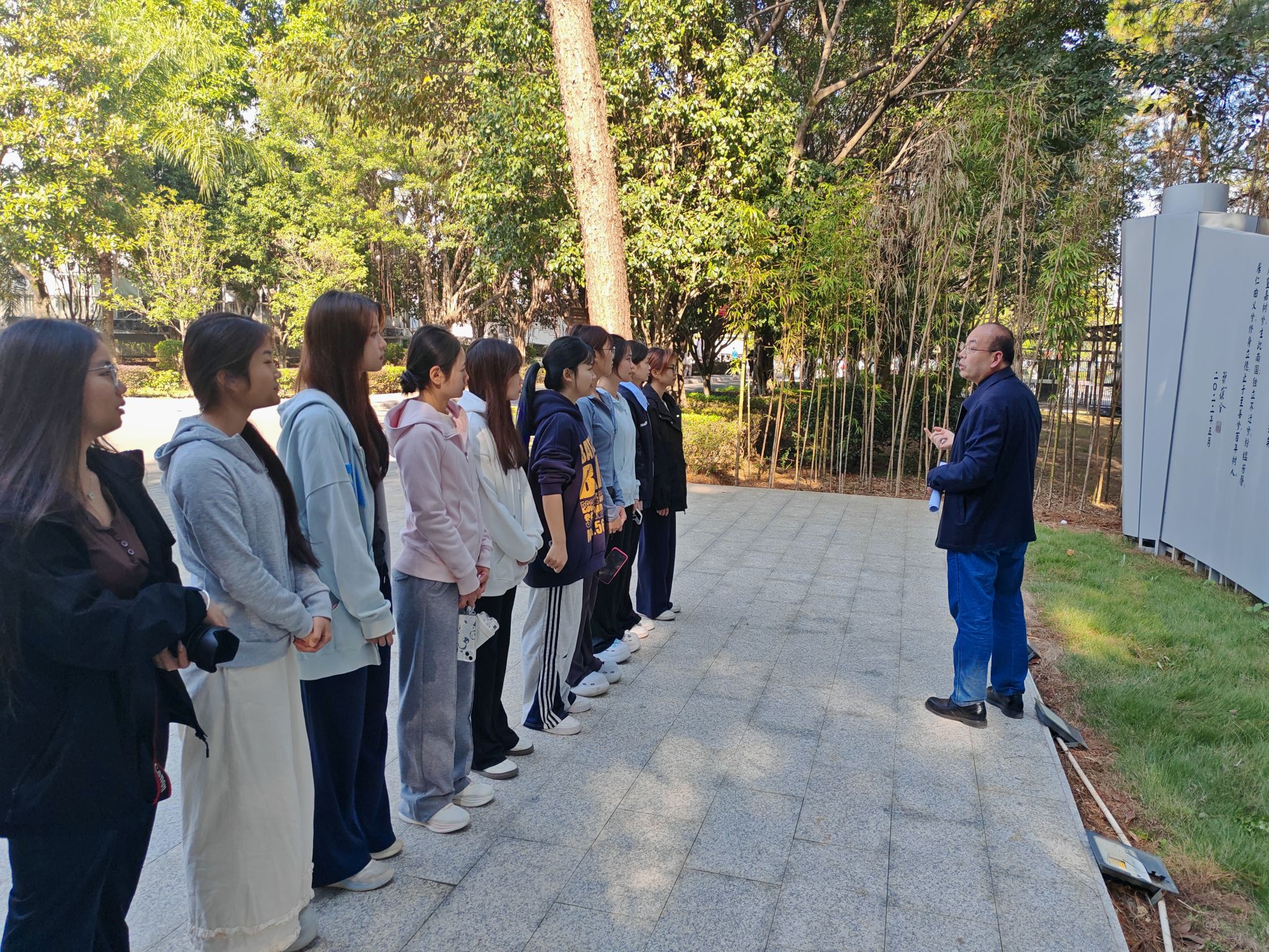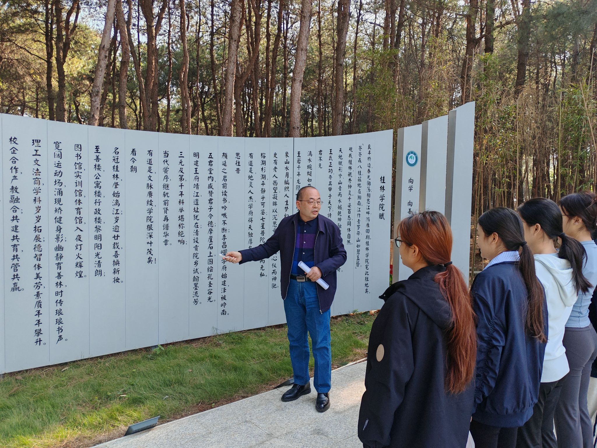 为帮助新生深入了解学校文化底蕴,增强爱校荣校情怀,11月23日,我院组织新生在《桂林学院赋》造型前举办了学习《桂林学院赋》文化讲座,由学院党总支书记讲解。
