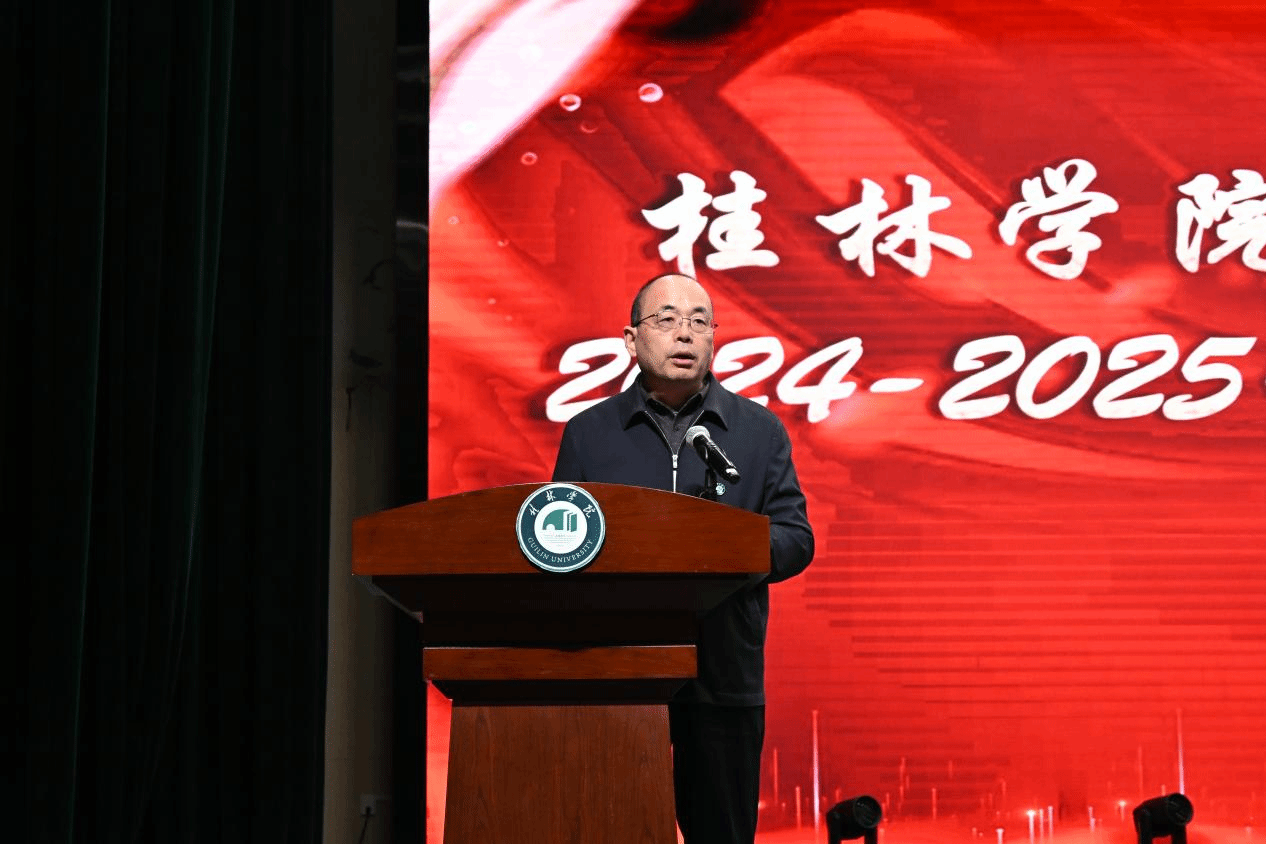 随后,学院党总支书记登台致辞,他首先回顾了过去一年全院师生在课程建设、艺术展演、学科竞赛等领域的亮眼成绩,提及教师团队在教学成果奖中的突破、学生在全国赛事中的获奖表现,同时勉励全体师生:“荣誉是对过往努力的肯定,更是未来前行的动力,期待大家以今日为新起点,在以后的路上再攀高峰。”话音落下,现场掌声经久不息。