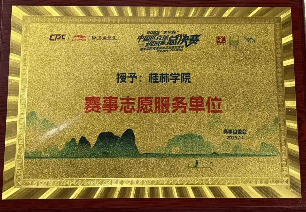 组委会特别授予桂林学院 “赛事志愿服务单位” 称号,以表彰我校在保障赛事文化氛围、推广全民健身及促进民族文化交流方面做出的突出贡献。此次成功参与国家级体育盛事,是桂林学院深化校地合作、主动服务地方文旅体事业发展的又一重要成果。学校将继续发挥高校人才与资源优势,坚守文化传承与创新使命,为桂林打造世界级旅游城市、推动中华优秀传统文化创造性转化与创新性发展贡献更多智慧与力量。