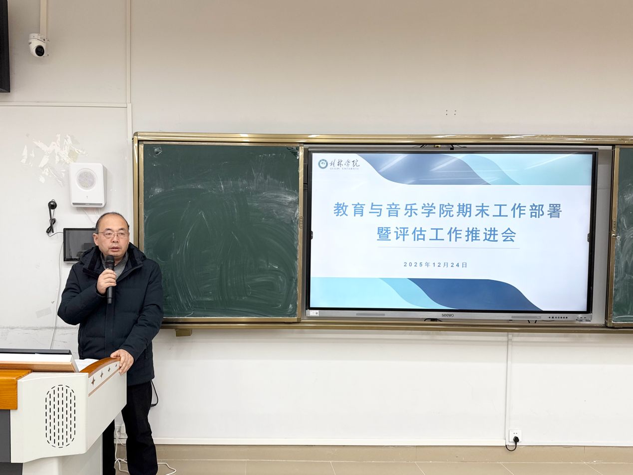 凝心聚力谋收官 砥砺奋进启新程。为扎实做好期末各项收尾工作,全面推进合格评估,12月24日,教育与音乐学院召开期末工作部署暨评估工作推进会。学院全体教职工参加会议,会议梳理学期工作成效,明确后续重点任务与责任分工。