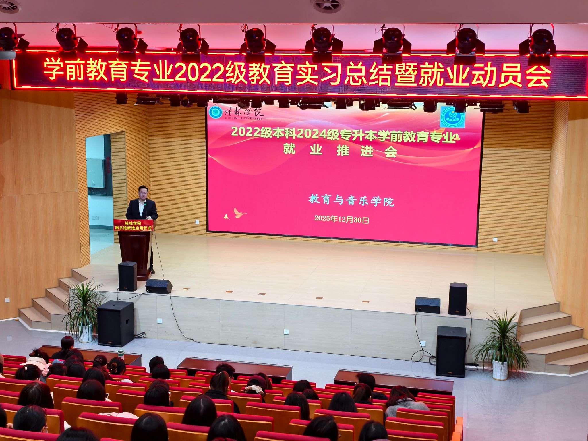 为帮助即将毕业的学子明确就业方向、缓解就业焦虑、提升求职竞争力,12 月 30 日上午,教育与音乐学院在新图书馆报告厅专为学前教育专业 2022 级本科及 2024 级专升本学生召开就业推进会。学院党总支副书记出席会议并发表讲话,为同学们的就业之路助力导航。